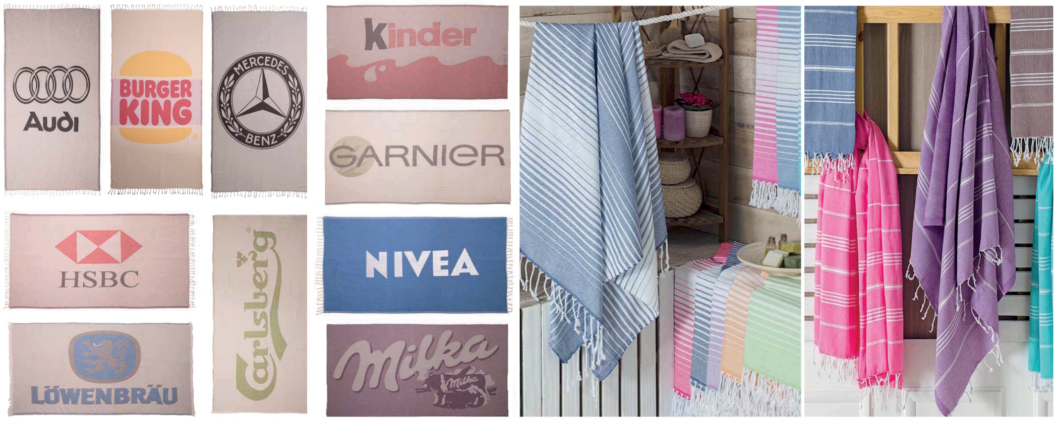 The extremely light and stylish travel and wellness towel (350g/m²) fits in any travel bag, dries particularly quickly and saves valuable resources. The ideal travel companion for the beach, swimming pool, sauna, sports or when traveling. With relief weaving of the logo and subtle striped look on white cloth. LOW MOQ's!
