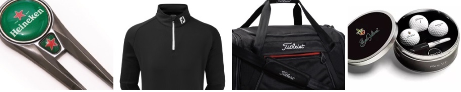 - Golf and caddie towels, Tees, pitchforks, pencils, repair tools, Score card holders, Golf ball- and tees pouches, Cap Clips, Ball Markers, Bag Tags, Umbrellas, Caps & Beanies, Gloves, Luggage & Bags, Golf Balls, Course Dressing, Etc… Contact us for all information requests.